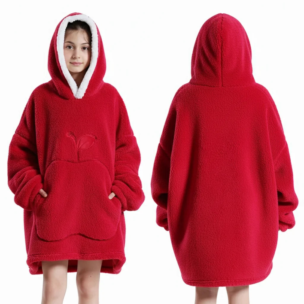 Definitely! The vibrant red color and universal oversized design make our Cozy Apple Hoodie a fantastic choice for both boys and girls. It's a stylish and snug way for any child to beat the cold.