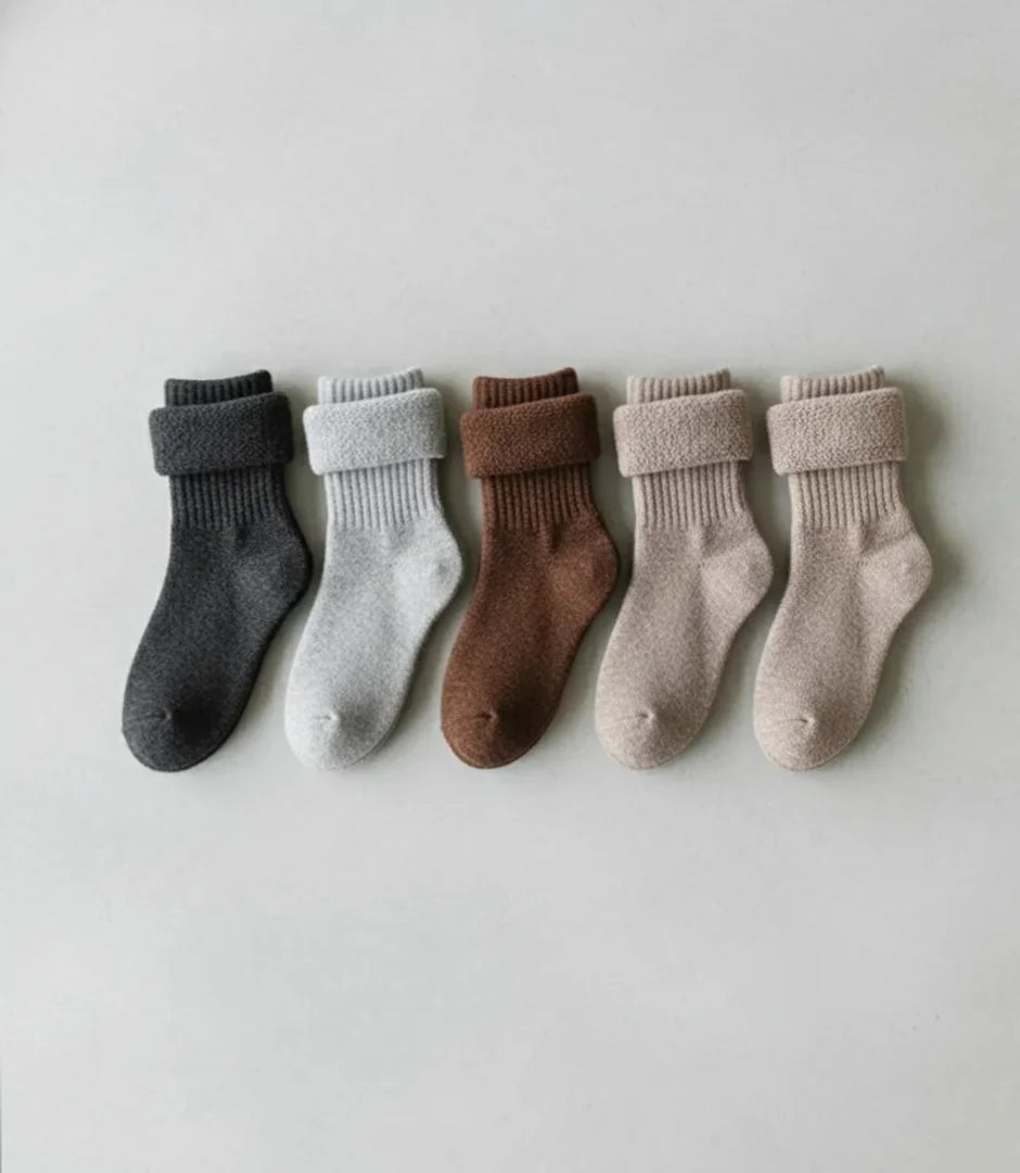 Our socks come in versatile beige, brown, light gray, and dark gray. Perfect for mixing and matching with any winter outfit, keeping them stylishly warm!
